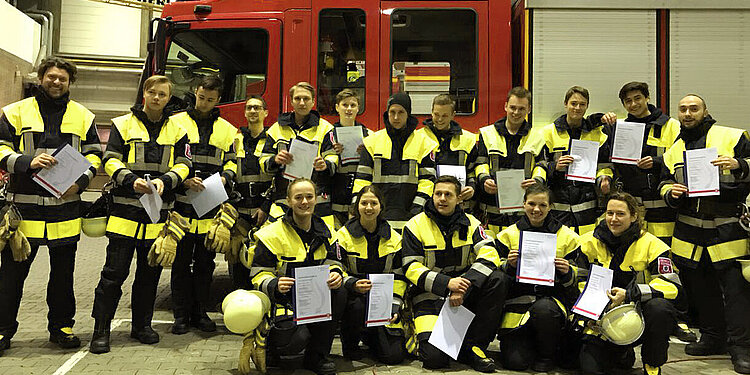 Die Teilnehmerinnen und Teilnehmer des Truppmann 1-Lehrgangs starten mit bestandener Abschlussprüfung in den Einsatzdienst in der FF München.
