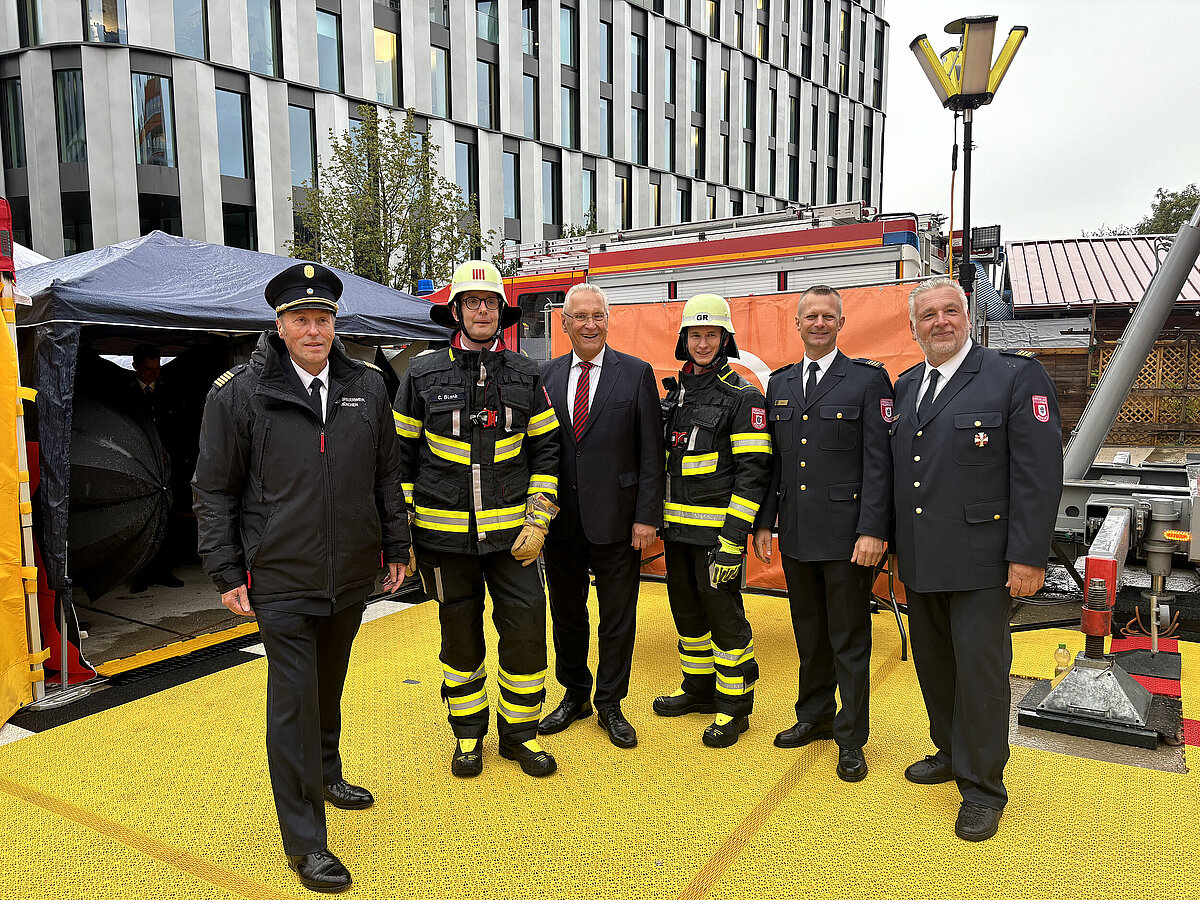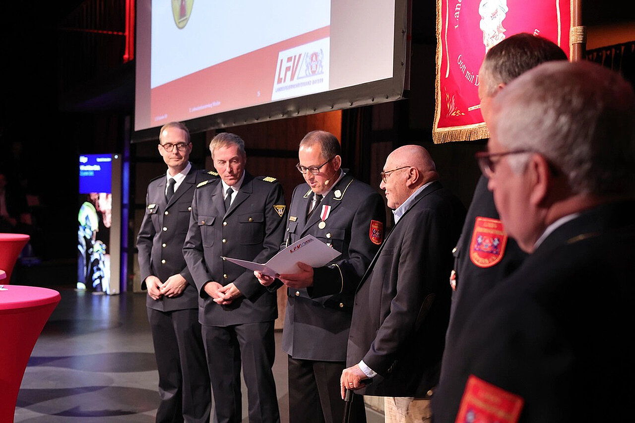 • Das Bayerische Feuerwehr-Ehrenkreuz in Silber wurde verliehen an Teresa Tiszbierek, Vizepräsidentin des Polnischen Feuerwehrverbandes und an Josef M. Lechner, Hauptbrandmeister, SFV München