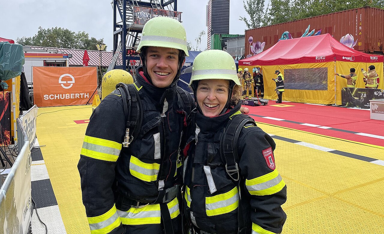 Als Teilnehmende von der FF München waren Carina und Hannes bei den Wettkämpfen mit dabei, die alle Disziplinen mit Bravour absolvierten.