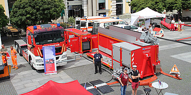 | Ehrenamtliche im Katastrophenschutz – unverzichtbar seit vielen Jahren. Über die Aufgaben der FF München im Katastrophenschutz konnten sich Besucher auf dem Wittelbacher Platz selbst ein Bild machen.