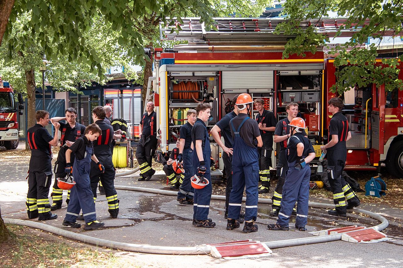Aber auch die Pflege und das Säubern von Gerätehaus, Fahrzeugen und Geräten stehen mit auf dem Programm. Zum anderen gestalten wir auch Gruppenstunden, wie einen gemeinsamen Kinobesuch, die Besichtigung einer Berufsfeuerwehrwache, der Integrierten Leitstelle oder eines Rettungshubschraubers.